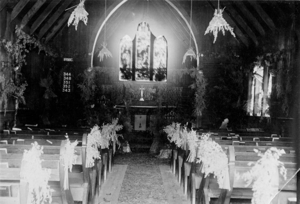 Lay names connected with its history are Francis C. Lang and his sisters, the Capt. F.P. Armstrongs, the J.F. Armstrongs, and Capt and Mrs. Bacon (these people were responsible for the erection of the church).